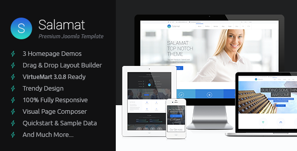 Salamat is a flexible and unique multi-purpose business Joomla Template with e-commerce features. It's ideal template for any agency like creative design agency, web development agency, PR agency, fashion agency, as a template for startup company or well established company. It would also look great for product or service landing page or product microsite.
